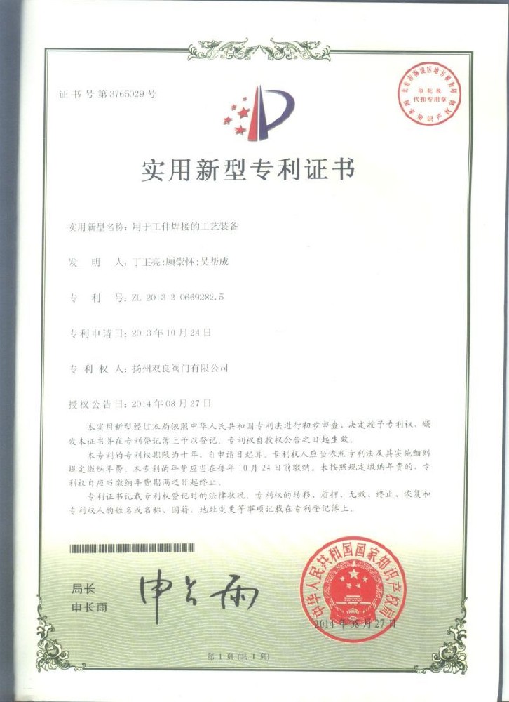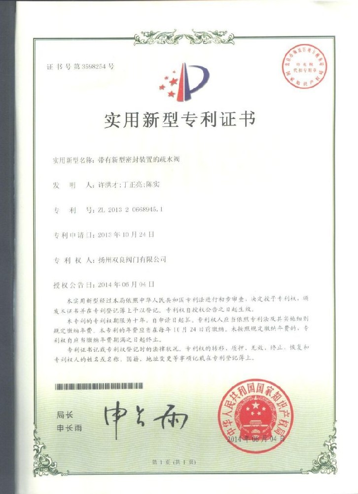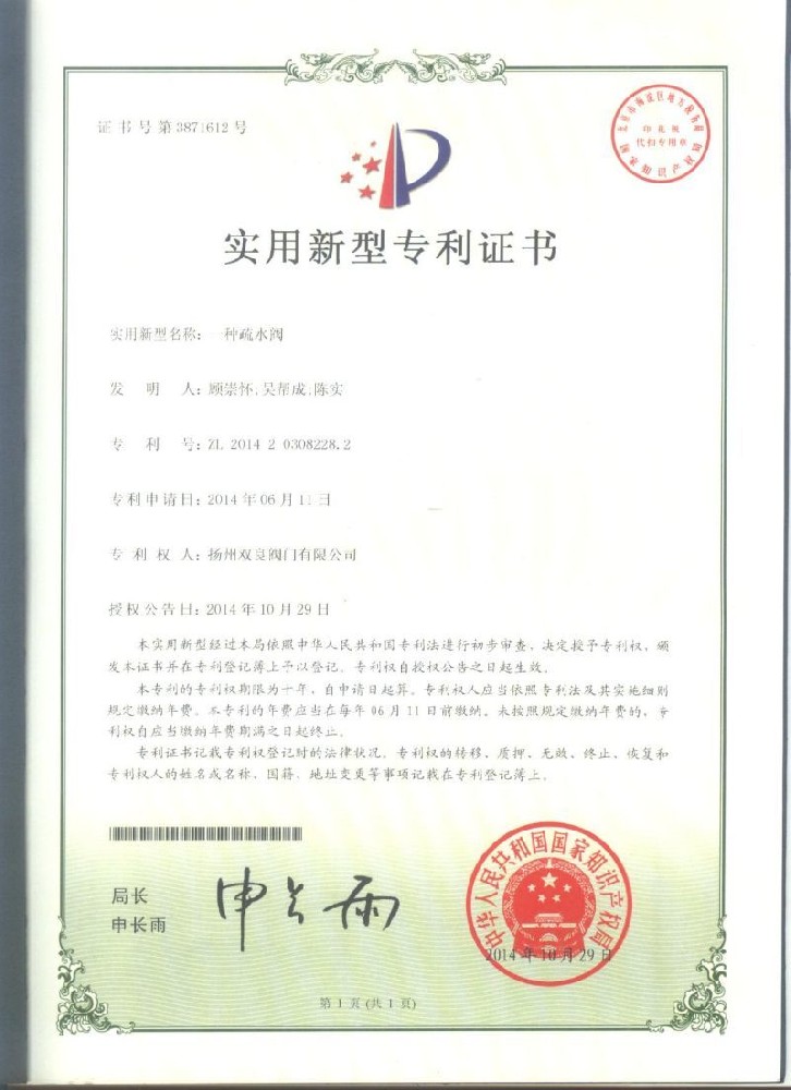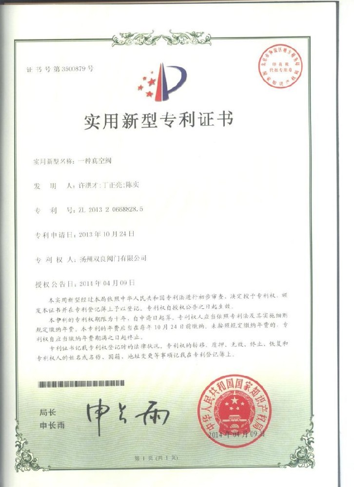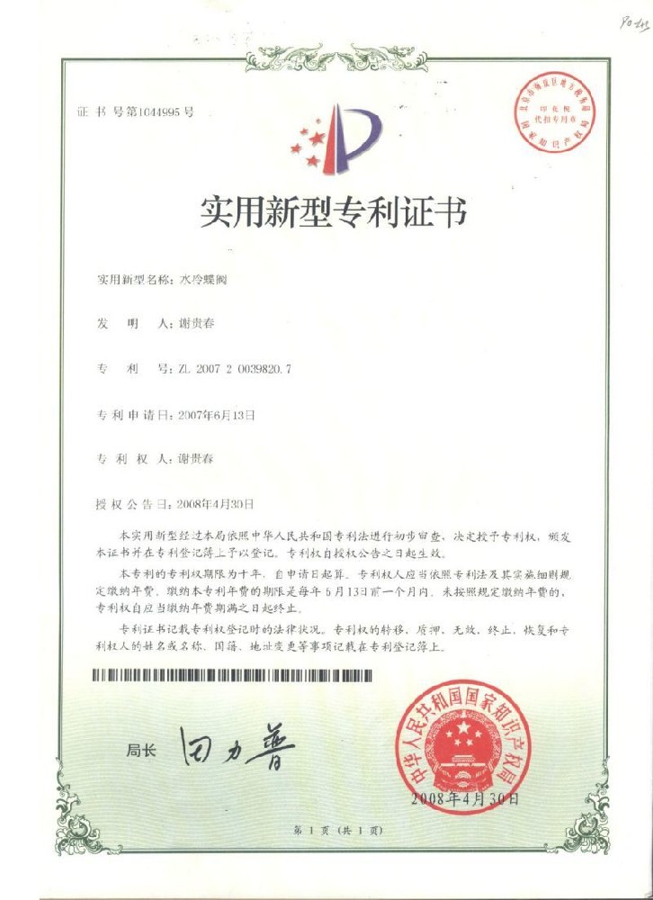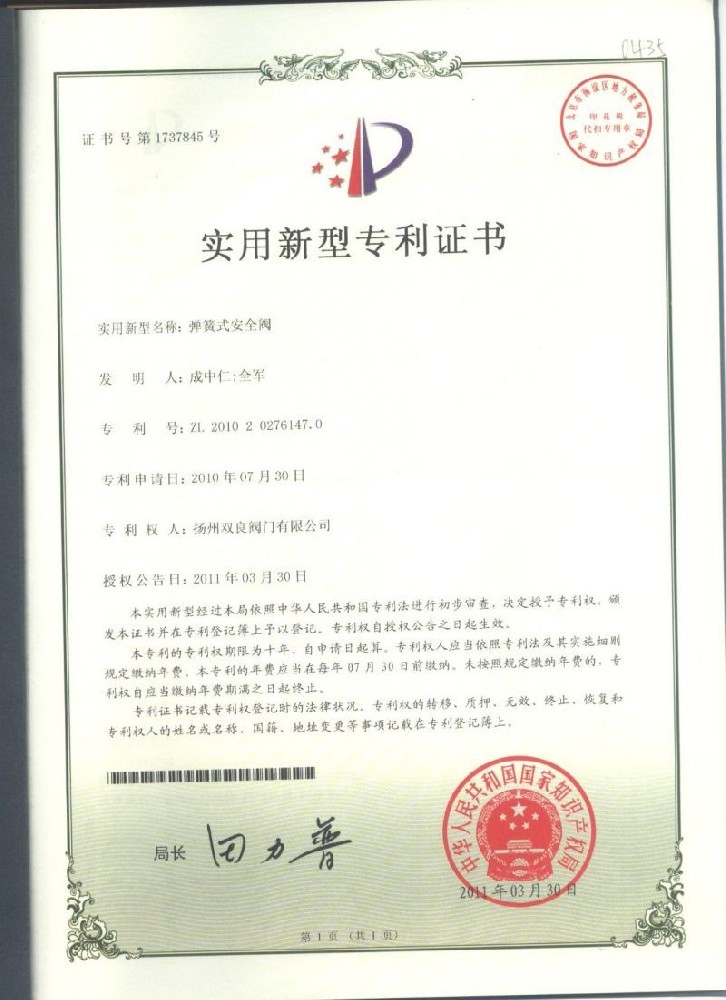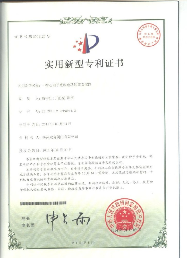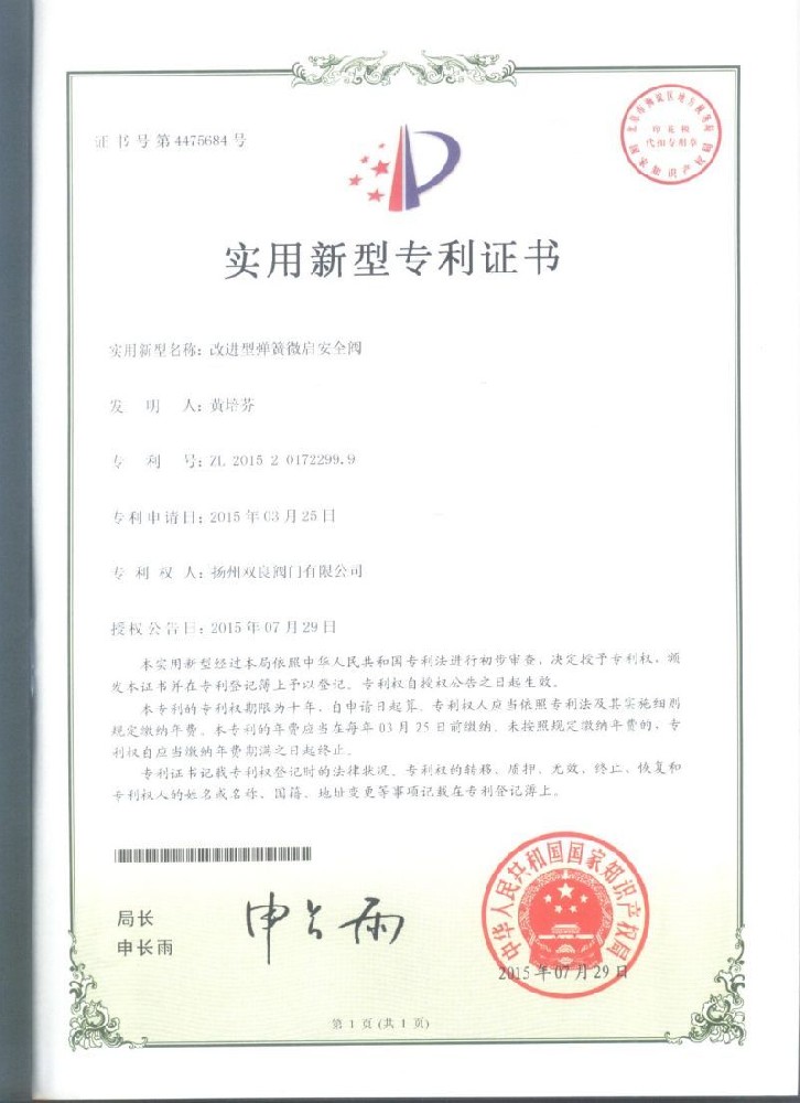 實(shí)用新型(xing)專利證(zheng)書
