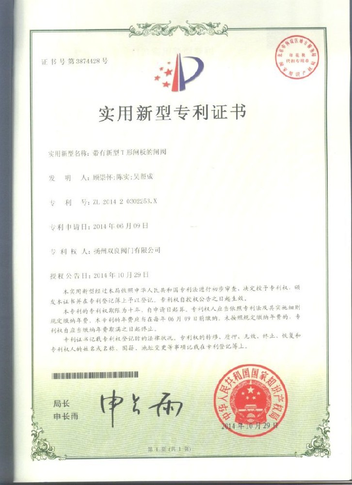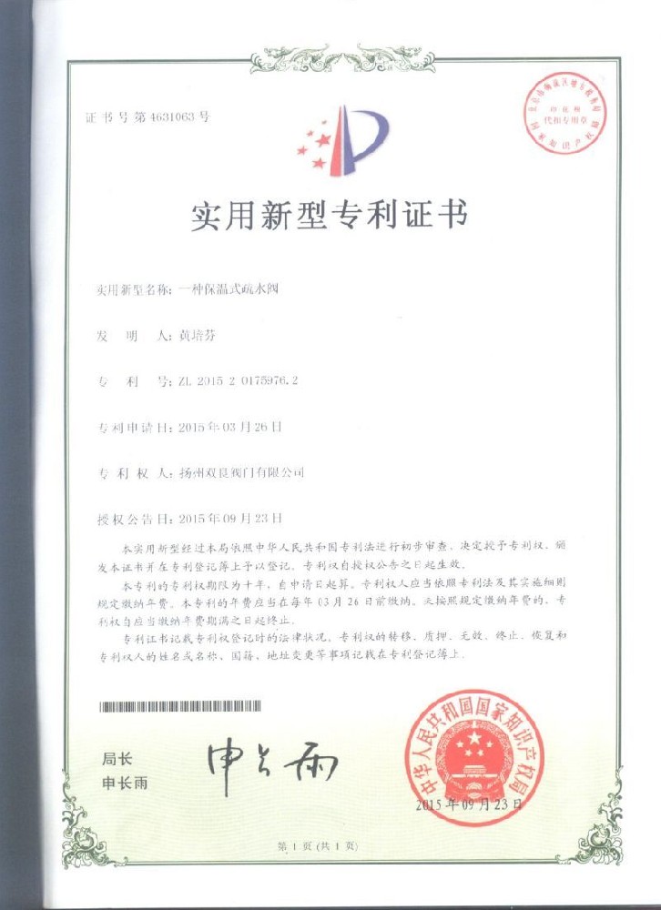 實用(yòng)新型專利證書(shū)